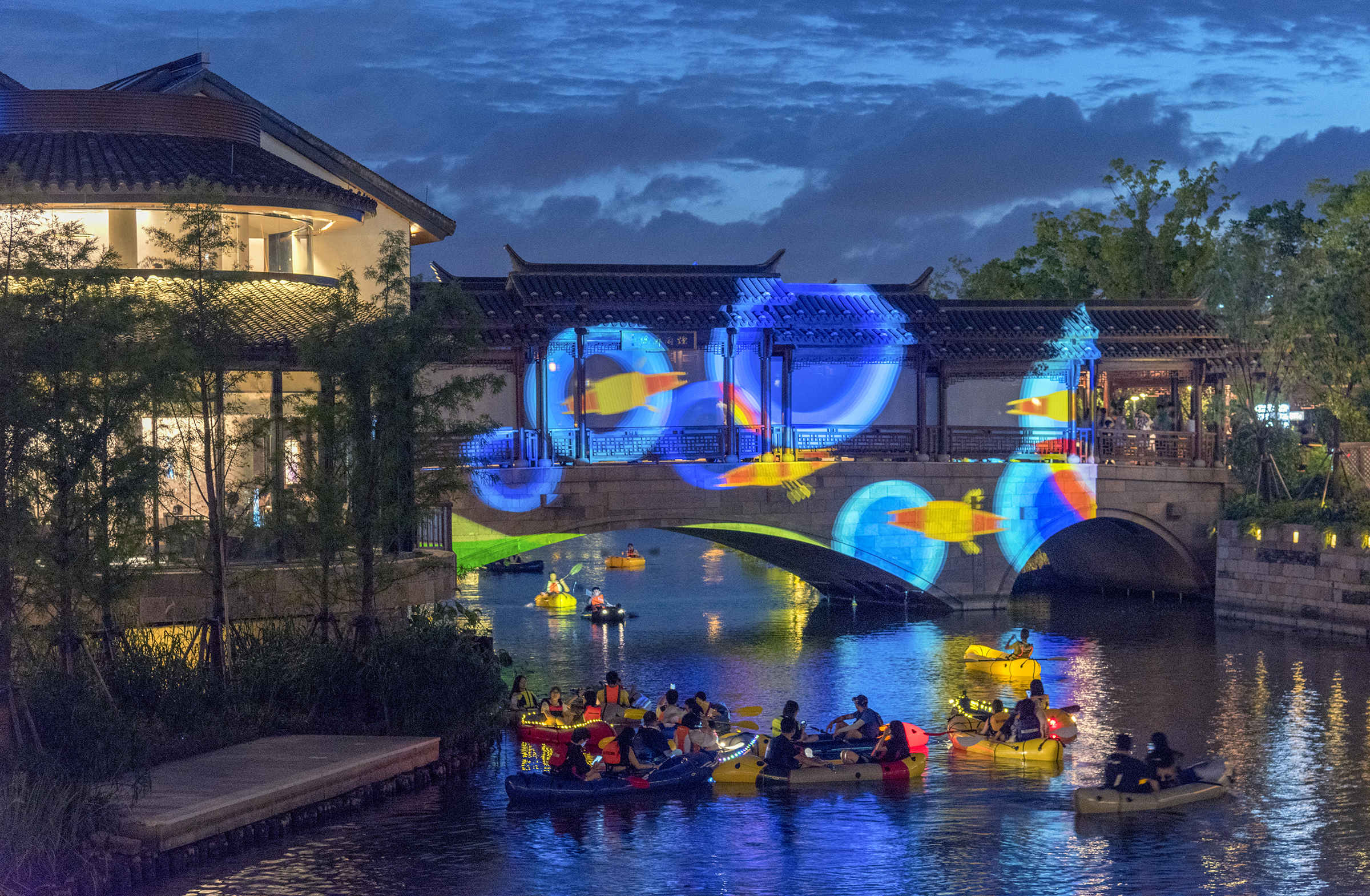 蟠龙天地:历经千年,留存了独特的江南景观,始建于元代,历经600多年的单孔石拱桥香花桥,仍长期为居民生产生活所使用,此外还有凤来桥、涵春桥等“九龙一凤”10座桥,漫步其上穿梭河流,感受蟠龙过去与现在的连接;青浦区的程家祠堂,已修缮焕新,常进行非遗展示;积蓄千年香火的蟠龙庵,可将美好的心愿挂上祈福之树……蟠龙天地自2023年开业以来,不断将传统与现代交融,成为人气居高不下的沉浸式江南打卡地。