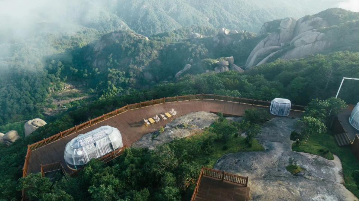 大荒云上星空露营地:集旅游、度假、疗养、森林康养于一体,并按星级酒店标准进行装配装饰,一期拥有星空房10套,包括圆形房型和椭圆房型。每个房间都配有天然胡桃木家具、投影、空调、卫浴等必备设施,让游客在享受大自然的同时,也能感受到家的温馨。