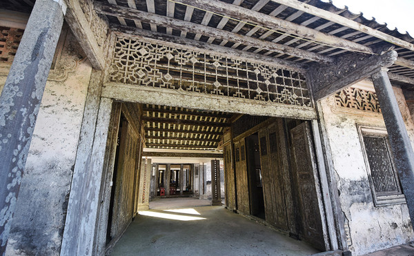 陈家宅:位于文昌市文城镇南海村委会义门村西,由旅居南洋华侨陈治莲及胞弟陈治遂1919年共同出资建造。坐东南朝西北,硬山顶,占地面积1217.2平方米,四进式,采用海南传统单轴线多进式格局,每间正屋大小相等,中间开四、六门,第一进明间置木质墙板,其余正屋均为火砖结构。门楼建于西北侧,横屋位于南侧,共有13间,木质梁架,门窗雕刻有麒麟、兔、狮、鹿、鸟及花草等图案,形态各异、栩栩如生,为文昌地区保存较好的传统民居之一。