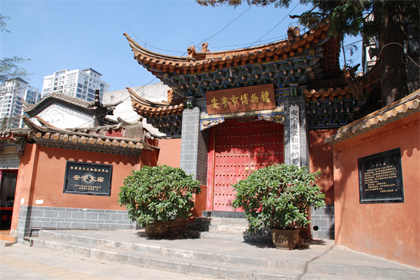 连然文庙:始建于元成宗大德六年(1302),古称学宫,亦称孔庙,是供奉孔子的殿堂。这里一直是安宁公学所在,是安宁文脉的主枝,在这里读书、出仕的云南名士数不胜数。安宁文庙规模宏大,有文明坊、照壁、大成殿、崇圣祠及东西两院、黉门、乡贤祠等七进六院共22座建筑物。主体建筑大成殿是文庙中建筑等级最高、规模最大的建筑,单檐歇山青色筒板瓦绿色琉璃瓦剪边,抬梁式土木结构,后檐及两山为墙体围护,前后檐设廊。1939年,梁思成、林徽因来此考古,确定文庙虽具有宋代风韵,但大成殿现存主体构架为元代所建,由于连然地处边疆,导致建筑风格相对滞后。文庙显示了云南省古代高超的建筑艺术,是昆明地区颇具代表的古建筑。