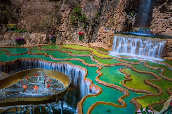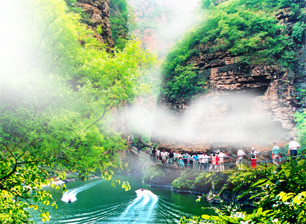 京东石林峡:位于平谷区黄松峪乡,是国家4A级旅游景区,以峭拔挺秀的石林峰群而著称,景区内峰、峡、石、水、林各具特色,植被茂密、空气清新、峰回路转、景致宜人。景区内的七彩池在阳光的照耀下,好似铺展在巨幅地毯上的宝石,闪耀着光辉。