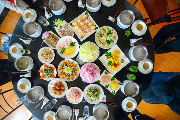 玻璃台玻璃宴:玻璃台村盛产玻璃叶,该村利用玻璃叶为盛器或附料的烹饪传统,经过多年改良,向广大游客推出蕴涵吉庆祥和之意的“四平八稳玻璃宴”“玻璃叶开包豆腐”“玻璃排骨”“玻璃饭”等传统特色美食,口感细腻、鲜美、爽滑,是纯天然无公害的绿色食品。
