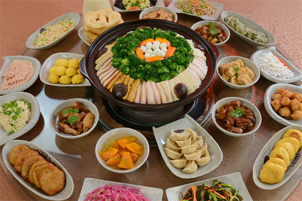特色美食:火盆锅豆腐宴、馥园特色砂锅、花开富贵熏肉宴、向阳鱼宴、一品豆腐锅、屯堡宴。
