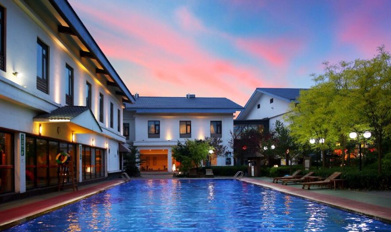 图片来源于网络,如有侵权,请联系告删国御温泉度假小镇是国家AAAA级旅游景区,位于河北省石家庄市藁城区,紧邻307国道和滹沱河生态休闲带,距离市区仅需20分钟车程。小镇集温泉沐浴、养生保健、膳宿会务、休闲娱乐于一体,拥有露天半露天特色养生汤池50余个,各类度假客房近300套,以及高标准游泳池、大型自助餐厅和多个会议厅,可满足游客的多样化需求。小镇环境优美,建筑风格融合徽派与汉唐风韵,灰瓦白墙、草木氤氲,如一幅水墨画卷。温泉地热井深达3254米,出水口温度85度,水质透明无异味,富含偏硅酸、偏硼酸、锶、锂、氟等矿物质,极具保健医疗价值。国御温泉度假小镇是石家庄周边知名的温泉度假胜地,为游客提供全方位的休闲体验。