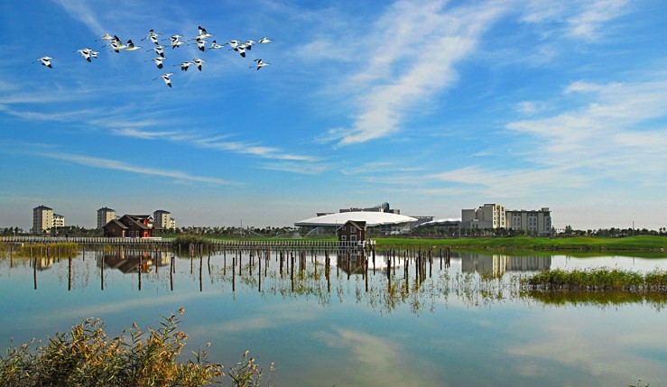 图片来源于网络,如有侵权,请联系告删曹妃甸湿地景区位于河北省唐山市曹妃甸区,是国家AAAA级旅游景区,总规划面积约为120平方公里,其中省级湿地和鸟类自然保护区占地110平方公里。这片湿地是北方最大的滨海湿地,被誉为“北国小江南”,拥有丰富的生物资源,包括63科164属238种野生植物和17目52科超过300种鸟类,是澳大利亚至西伯利亚鸟类迁徙的重要驿站和栖息场所。景区内设有湿地迷宫、湿地探索区、垂钓中心等多个功能区,提供游船、观鸟、垂钓等休闲活动,同时保留了原生态的湿地风光,是集鸟类观光、湿地体验、科普教育、商务会展、运动休闲、生态居住为一体的高端旅游休闲度假社区。