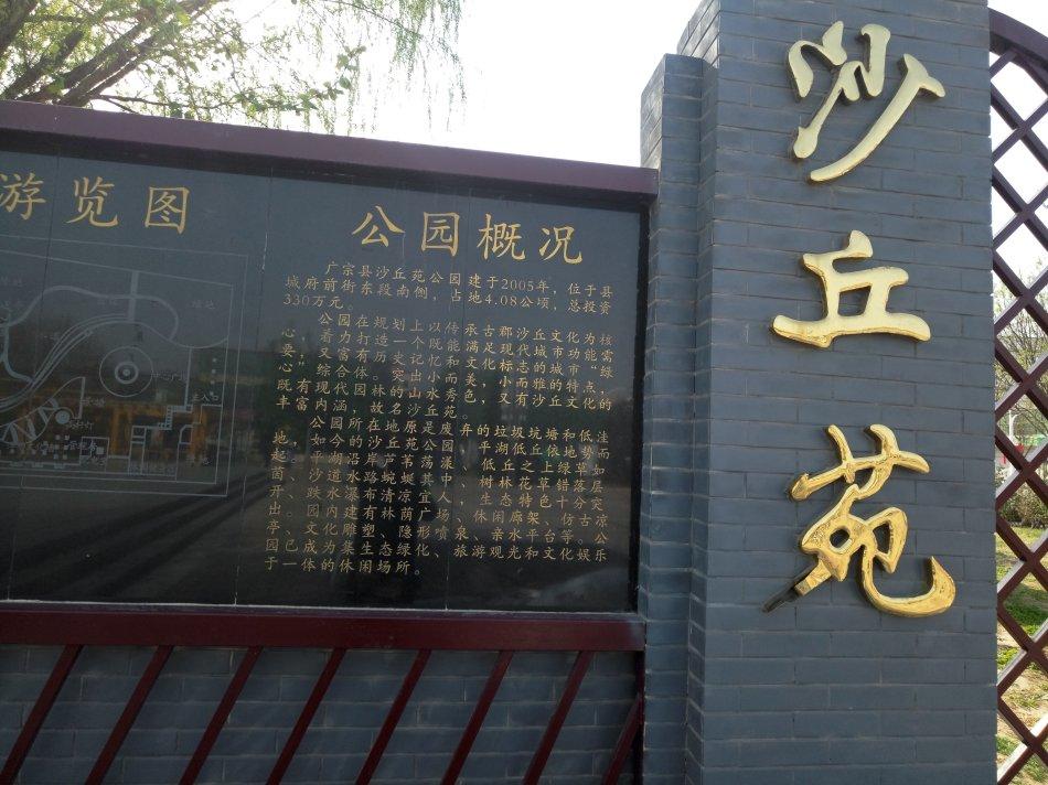 3、景区简介:沙丘宫平台遗址,位于今河北省邢台市广宗县大平台村南,是一个长一百五十米,宽七十米地沙丘。广宗县境内地势平衍,土壤概系沙质,到处堆积成丘,故古名沙丘。沙丘宫也得名于此。据史书记载,这片看似不起眼地土地,就是著名地“困龙之地”,威武不可一世地始皇帝(秦始皇嬴政)在此落马,不甘心地结束了自己地一生。秦汉以来,此地成为一方名胜。文人骚客在此留下不少了诗文--“武灵遗恨满沙丘,赵氏英名从此休”;“鱼分龙臭曾兹台,野寺清钟入夜哀”......清朝康熙年间广宗县吴存礼地《沙丘宫怀古》,堪为其中代表。