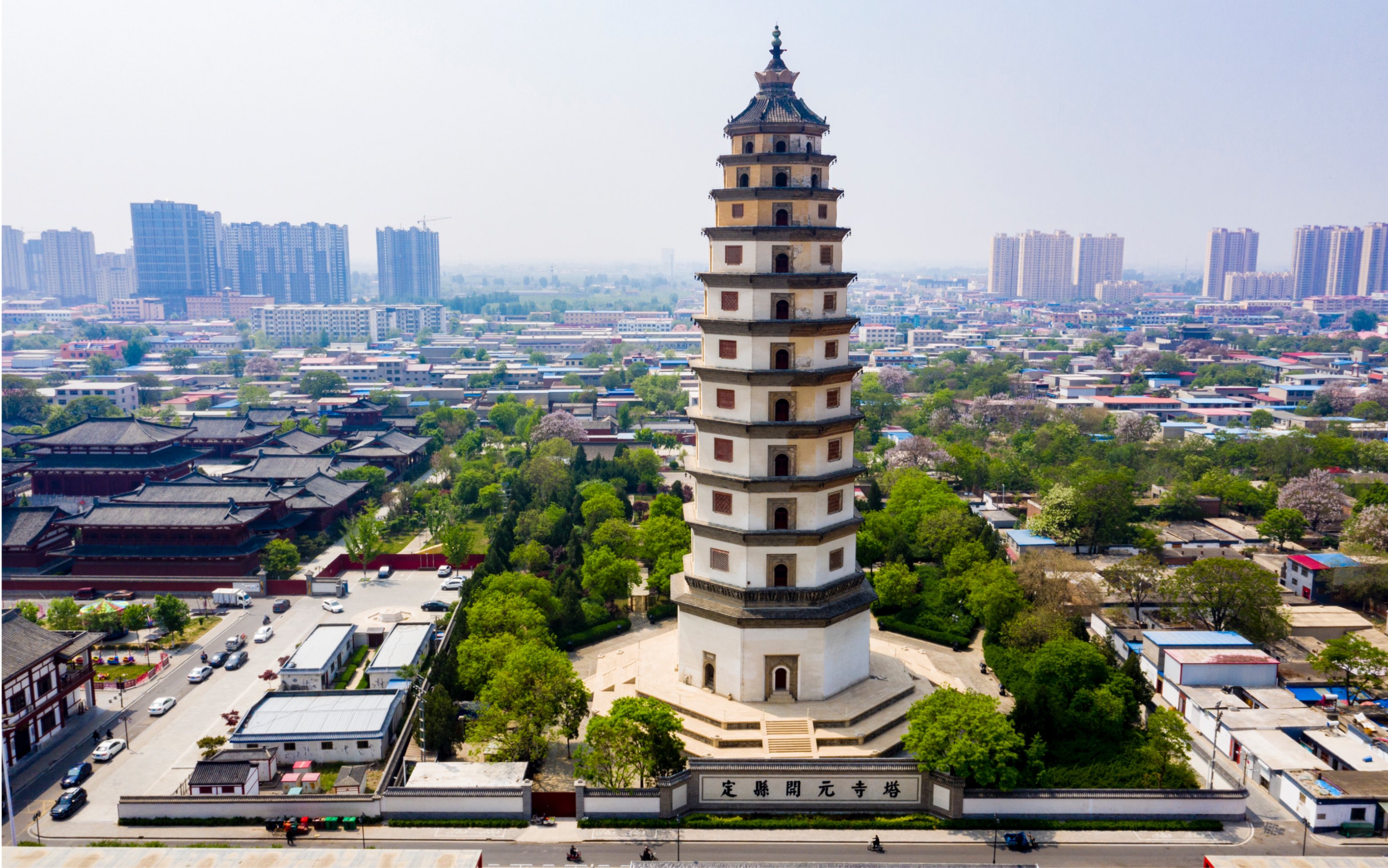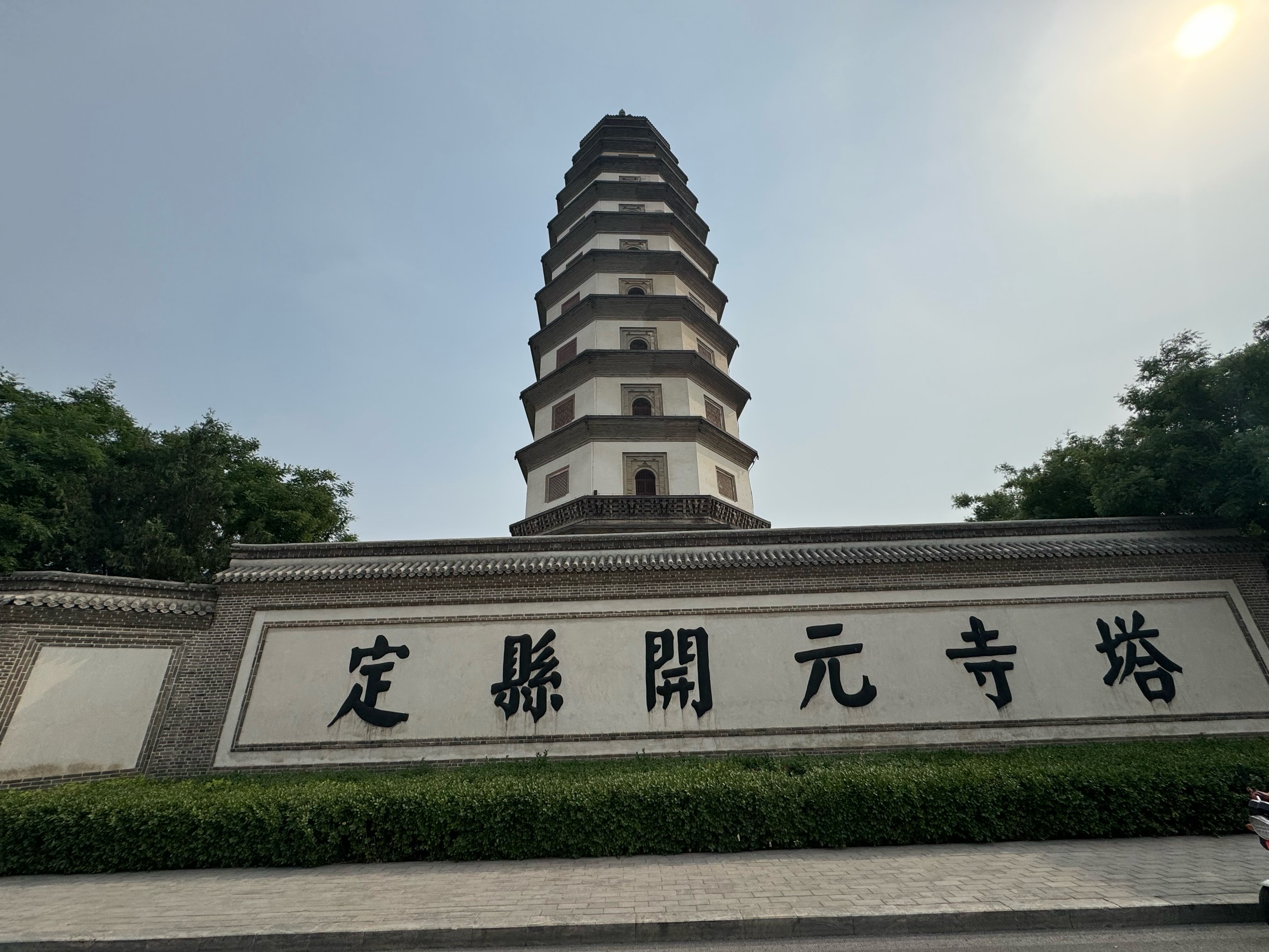 图片来源于网络,如有侵权,请联系告删开元寺塔,又名料敌塔,因塔建于开元寺内,故通称“开元寺塔”。位于河北省定州市南城门内东侧开元寺内。北宋咸平四年(1001年),宋真宗为了供奉开元寺僧令能从古印度取回的佛经、舍利而下诏建寺筑塔,北宋至和二年(1055年)建成,历时55年。因定州为辽、宋双方接近的军事要地,宋朝为了防御契丹,利用此塔瞭望敌情,故名“料敌塔”(或“瞭敌塔”)。定县开元寺塔为八角形楼阁建筑,是中国现存较高的古砖塔,造型端庄威武,塔身十一级,从下至上按比例逐层收缩。塔内结构为外塔体环抱内塔体,楼梯从内塔体穿心盘旋到达塔身顶部。塔身由内外层衔接,形成塔内藏塔的奇特结构。定县开元寺塔是一座集建筑艺术、佛教文化、书法绘画艺术于一体的佛塔,在中国古代建筑史上占有重要地位。