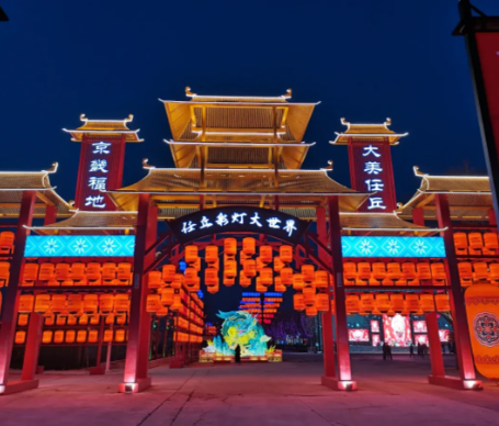 图片来源于网络,如有侵权,请联系告删任丘彩灯田园旅游景区设立于2018年,位于河北省任丘市S328省道以北,毕庄渠两侧,总占地面积66100平方米,由任丘市田园小镇旅游开发有限公司运营管理。公司以彩灯展示区、田园亲子互动区及综合配套服务区为三大功能版块,依托彩灯、民俗等资源打造“绚丽彩灯、魅力田园”特色项目。景区聘请张家口蔚县打铁花非遗传承人,自贡灯会美术顾问参与特色项目落地任丘,制作大型花灯,打造儿童乐园、花海恐龙园等设施,供游客参观游玩。
