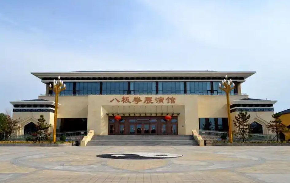 图片来源于网络,如有侵权,请联系告删八极拳展演馆位于孟村八极拳国际培训中心东侧,景区占地约36亩,包含游客接待区、八极游园、八极湖等功能区域。是一座集教学、传承、表演、研讨于一体的现代文化展演中心。展演馆占地9000平米,主体建筑5000平米,一层包括八极拳文化展示区、正厅及东侧展览区,二、三层为多媒体会议室、办公室等配套设施,展演馆训练大厅总面积3000余平方米,设有固定看台及移动看台,可容纳观众2000余人。