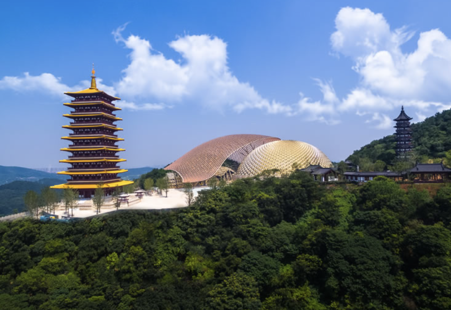 图片来源于网络,如有侵权,请联系告删江苏省南京市牛首山文化旅游区位于江苏省南京市江宁区境内,该山体海拔242.9米,面积约5500公顷。因东、西峰对峙的形状像牛头双角而得名,民间又称牛头山,西峰山体因开采铁矿受损,牛首山仅留东峰。317年,晋元帝司马睿初建东晋王朝,见南眺牛首,两峰对峙,称牛首山为天阙。459年,始建幽栖寺。503年,司空徐度于梁天监二年初佛窟寺。774年,添建宏觉寺塔。943年,建帝王陵墓。1050年,建辟支塔。明正统年间佛窟寺更名为弘觉寺。1993年,高僧宏成法师重建宏觉寺,名为宏觉寺。2011年9月,佛顶骨舍利安奉于牛首山。牛首山属于丘陵岗地,由中生代火成岩构成,地区地处北亚热带中部季风气候区。其分布有佛顶寺、佛顶塔、佛顶宫、岳飞抗金故垒、摩崖石刻、弘觉寺塔、郑和文化园等相关人文景点。牛首山文化旅游区的寺庙群分为东、西两部分庙群,共有寺庙44座,东西相距10公里,是西北地区最大的寺庙群。该风景区内蕴藏具有价值的植物种类达300多种,祖堂山路的尽头还有100余棵以上,堪称南京最大的南京椴基因库。旅游区注重生态建设和环境保护,特别是加强景区内野生动植物多样性保护,并发现有一级保护动物梅花鹿、狗獾、野猪等国家二级保护动物的活动踪影。牛首山是金陵四大名胜之一,建有江苏省省级森林公园——牛首山森林公园,建有国内首个中华虎凤蝶保护基地、中国国家4A级旅游景区—牛首山文化旅游区。