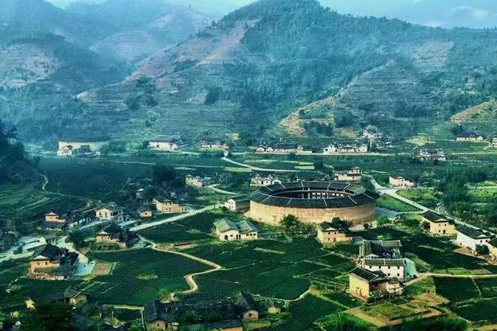 3.景区简介:二宜楼建于清乾隆年间,直径73.4米,是福建土楼中保存最完整、功能最齐全的双环圆形土楼,被誉为“土楼之王”。楼内现存壁画226幅、楹联163副,融合防御、居住与艺术功能,设有土楼文化馆、夯土技艺体验区。景区联动南阳楼、东阳楼等土楼群,配套茶山观光、畲族歌舞表演,年接待游客超80万人次,是闽南客家文化与建筑艺术的活态展示窗口。