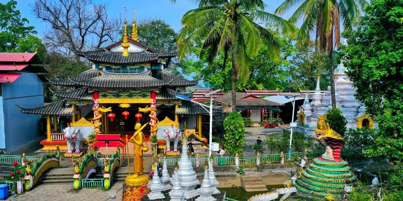 图片来源于网络,如有侵权,请联系告删孟定南亚风情旅游区以傣族文化为基调,融合东南亚风情,核心景点包括芒团傣族村、洞景佛寺和南汀河风光带。游客可体验傣族手工造纸(国家级非遗)、参与泼水节狂欢,或乘竹筏游览南汀河热带河谷。景区内还设有特色夜市,提供傣味烧烤、香茅草烤鱼等美食,夜晚可欣赏傣族“嘎秧舞”表演。