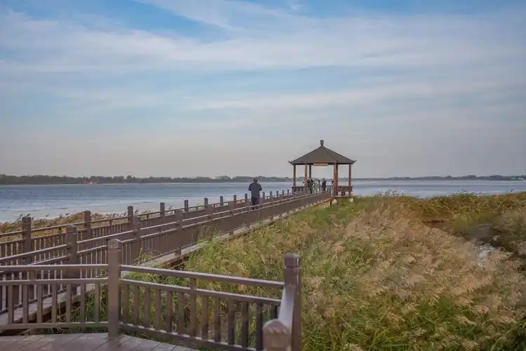 3.景区简介 :宁夏吴忠黄河国家湿地公园位于宁夏回族自治区吴忠市利通区与青铜峡市交界处,总面积28.76平方公里,呈狭长带状分布,包含湿地保育区、湿地体验区、合理利用区、湿地功能展示区和服务管理区五个功能区。该湿地以黄河上游河流湿地为主,兼有湖泊、人工湿地等类型,栖息着248种湿地植物及黑鹳、中华秋沙鸭等162种野生动物,是欧亚大陆鸟类迁徙的重要栖息地。其生态系统兼具水源涵养、防洪滞洪和净化水质等综合功能,对维护区域生态平衡具有重要作用。