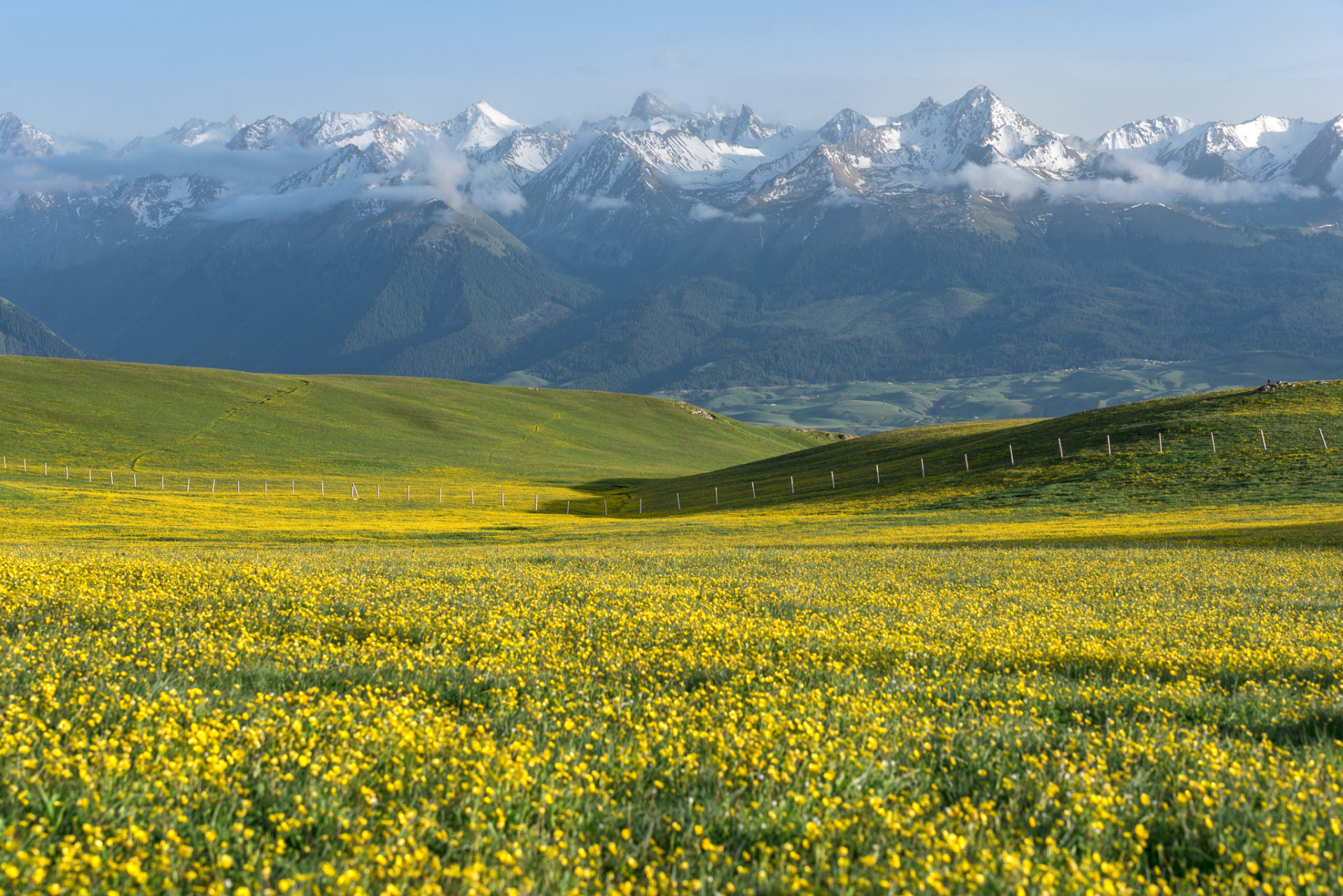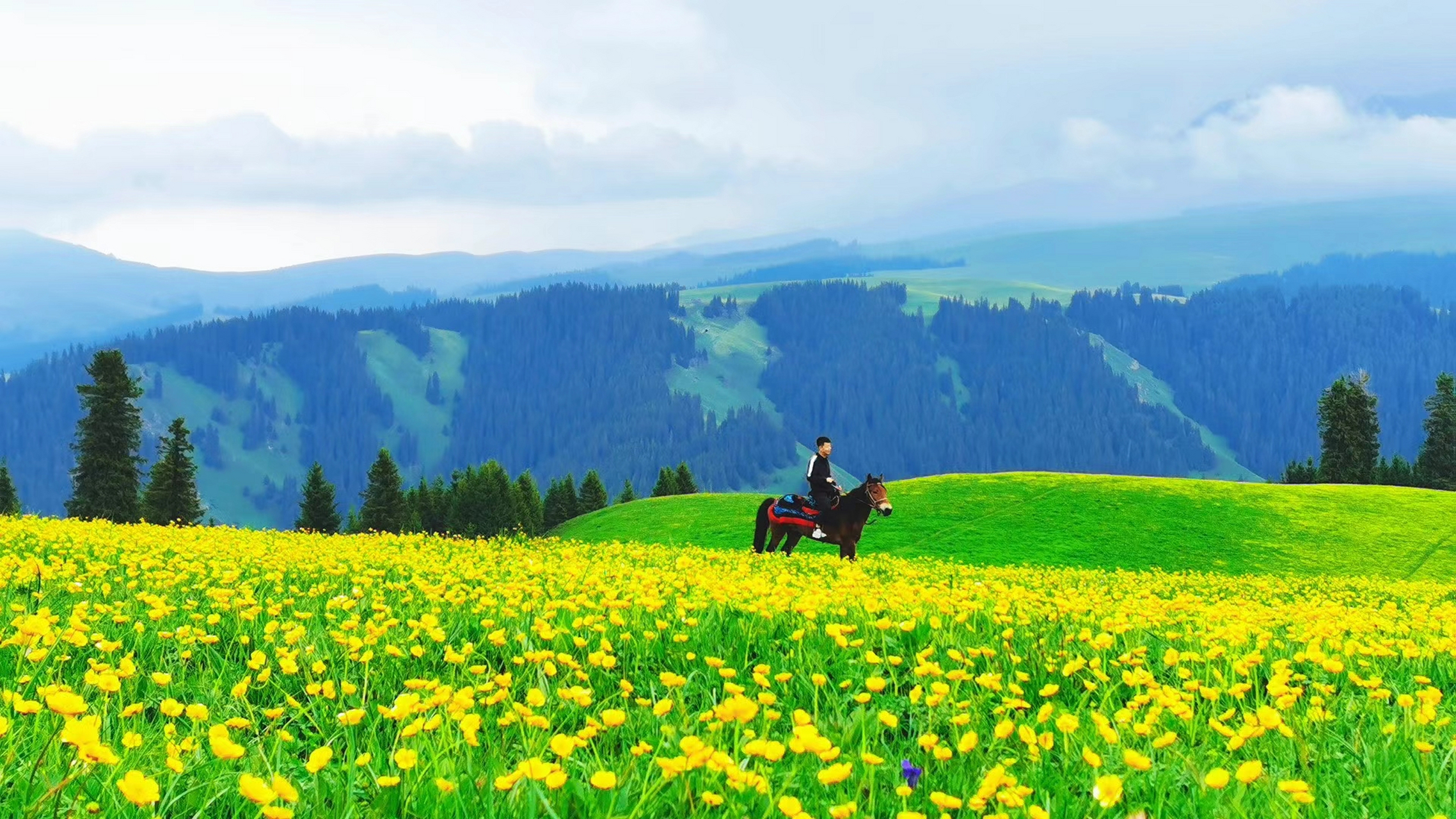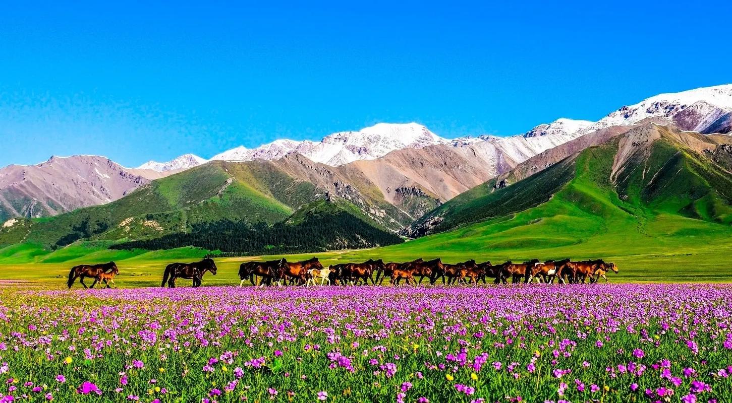 3. 景区简介:喀拉峻草原位于新疆特克斯县,是世界自然遗产地、天山“立体草原”的典范。这里地势起伏如波浪,雪山、森林与五色花海交织,被誉为“空中花毯”。独特的“人体草原”地貌和哈萨克游牧文化吸引众多摄影爱好者,游客可骑马穿越、星空露营,体验《国家地理》评定的“中国最美草原”之壮阔与灵动。