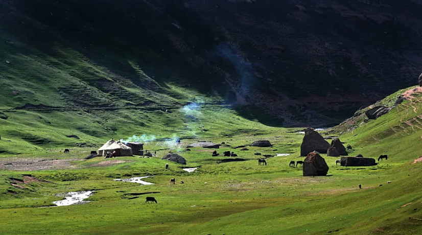 图片来源于网络,如有侵权,请联系告删玉其塔什草场位于新疆克孜勒苏柯尔克孜自治州乌恰县乌鲁克恰提乡西北部边境,占地面积100多万亩,属非景点性质夏牧场。其柯尔克孜语意为“三个石头”,因三座海拔4500米以上的终年积雪雪山得名,被载入《中国名胜古迹大观》,是新疆南部海拔最高、面积最大的夏季牧场。草场平均海拔4500米以上,土壤肥沃,植被覆盖度达80%,以针茅、嵩草等为主。夏季冰雪融水形成溪流,滋养约20平方公里草场,支撑十万头牲畜及五千名牧民生活。地形开阔呈红绿相间条带状景观,风化山峰造型独特,绿茵如毯间杂各色山花,7月为放牧黄金季节。