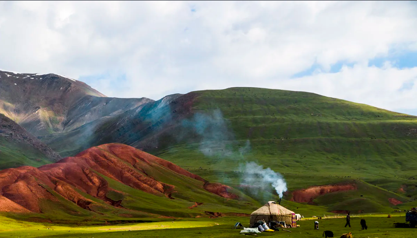 3.景区简介:玉其塔什草场位于新疆克孜勒苏柯尔克孜自治州乌恰县乌鲁克恰提乡西北部边境,占地面积100多万亩,属非景点性质夏牧场。其柯尔克孜语意为“三个石头”,因三座海拔4500米以上的终年积雪雪山得名,被载入《中国名胜古迹大观》,是新疆南部海拔最高、面积最大的夏季牧场。草场平均海拔4500米以上,土壤肥沃,植被覆盖度达80%,以针茅、嵩草等为主。夏季冰雪融水形成溪流,滋养约20平方公里草场,支撑十万头牲畜及五千名牧民生活。地形开阔呈红绿相间条带状景观,风化山峰造型独特,绿茵如毯间杂各色山花,7月为放牧黄金季节。