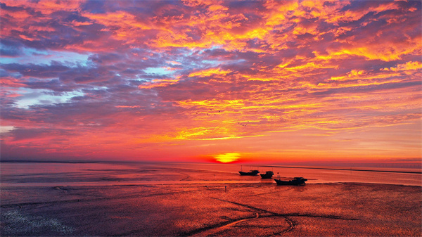 条子泥辐射沙脊群日出