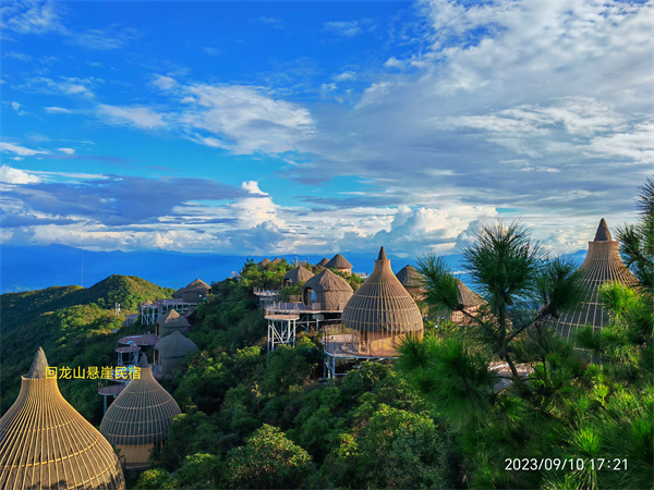悬崖民宿:位于回龙山景区内,该项目按照高标准生态度假精品民宿打造,山顶的一栋栋小木屋,采用航空铝材建造,每一栋都临山崖而建,每一栋都坐拥独特景观,配套超大露台。清晨,云雾缭绕,如同置身仙境;夜晚,星空闪烁,美不胜收。不管是独享心灵放松,还是共享亲子时光,都能带给游客难以忘怀的美好记忆。