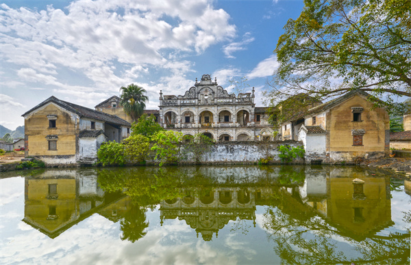 郭松年庄园:始建于民国初期,主楼前座和后座融合西方巴洛克建筑精髓,广泛运用拱门、拱券、回廊、雕塑等西方建筑手法,建筑整体线条流畅优雅,富于动感,充分展现了富丽堂皇的特质,是广西岭南建筑和西式建筑相融合的典型代表。