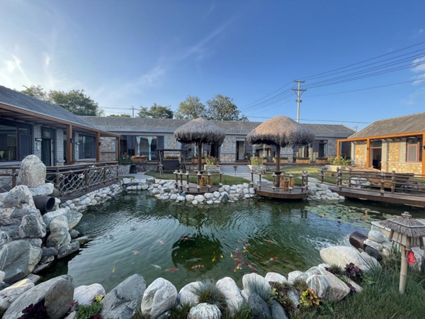 时光故事民宿:占地面积1200余平方米,民宿外墙的青砖与石块相得益彰,内部保留着原有的房梁结构和木质顶棚,透露出“大隐于市、小隐于野”的感觉。目光所及,皆是一番渔家景象,一艘木船在庭院停泊,可以领略到多彩的渔家生活。