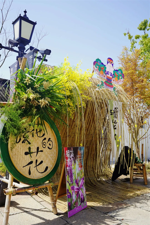 花朝水集:花朝集市、簪花赏红、春放纸鸢、游春赏花……这些是花朝至清明期间江南地区的春日风尚,人们往往“祝神集会”,形成热闹的集市,尤以花市为盛。在江南的水岸边,以花之名,蟠龙天地举办“蟠龙水集·花朝春市”,100多只手工纸鸢装饰、10多处出片打卡点位、30多位集市摊主共同唤醒一场春日风雅庆典。花朝水集设有蹴鞠、手绘纸鸢、飞花引线、植物拓印等古风体验项目,让游客沉浸式体验优秀传统文化的魅力。清明期间更有江南春颂快闪演出,邀请广大游客换上汉服、戴上簪花,在踏春郊游时放“纸鸢”、逛“春市”、赏“春颂”。