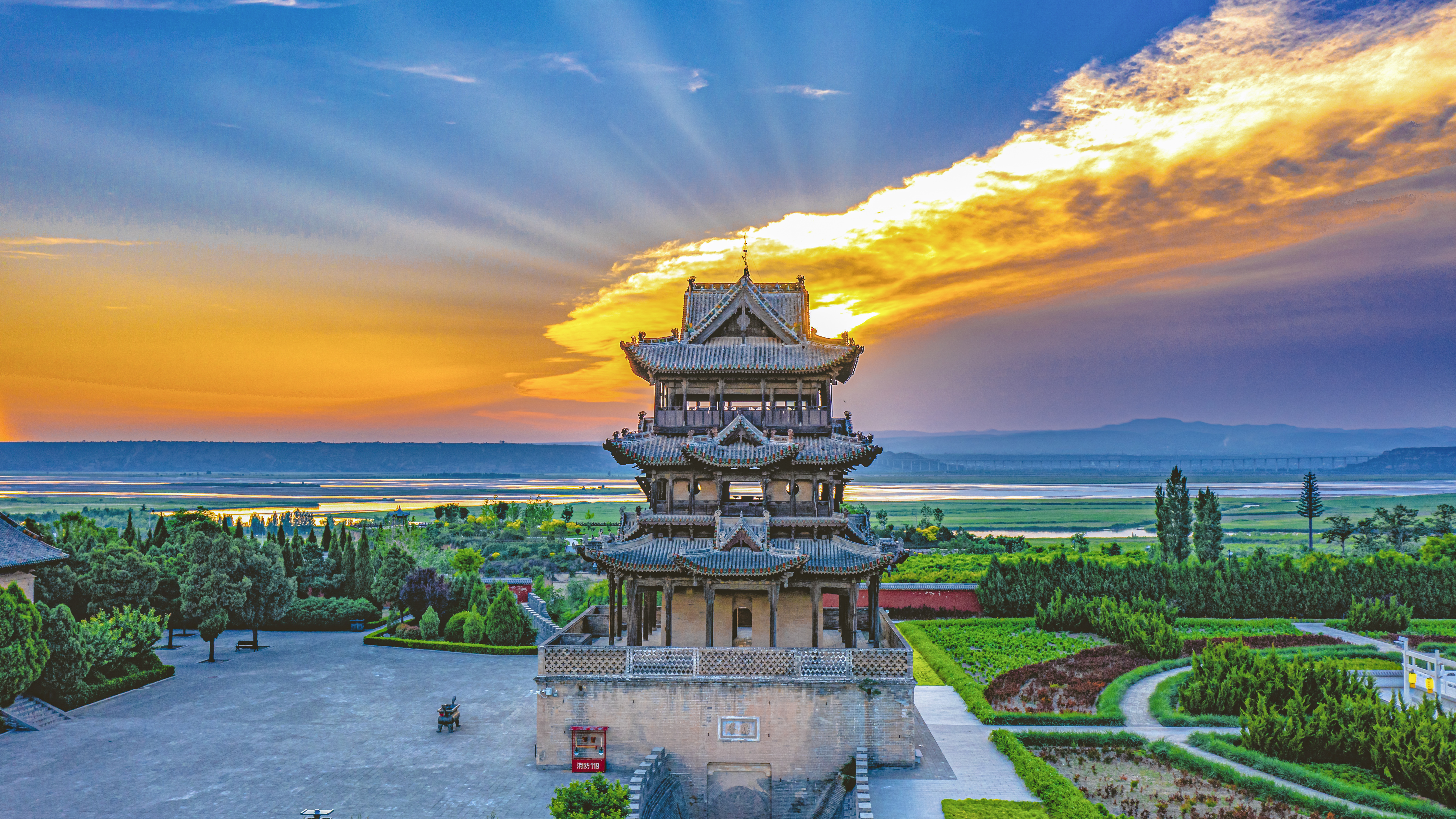 万荣县东岳庙:全国重点文物保护单位,属群体性建筑,建筑布局沿袭了中国古代宫廷的建筑特征,坐北向南、前朝后寝。飞云楼为东岳庙中轴线上的主要建筑之一,有“天下第一木楼”之美称,是极具文化底蕴的标志性建筑,和应县的木塔相互辉映,被誉为山西的“南楼北塔”。当地流传着“万荣有座飞云楼,半截插在天里头”的民间俗语,形容飞云楼宏伟壮丽,高耸入云。