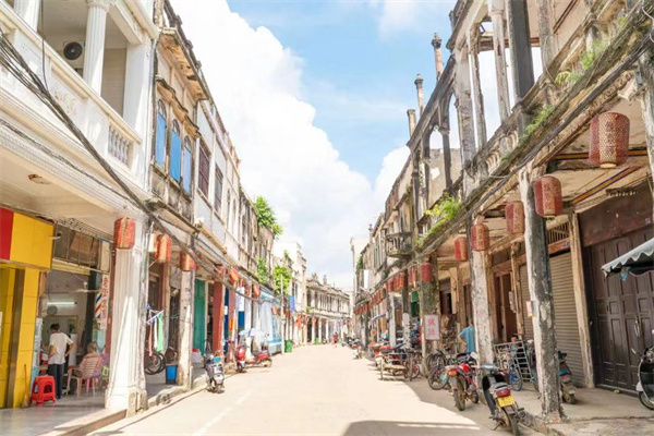 铺前骑楼老街:位于文昌市铺前镇西南,临港傍海,是海南第二大骑楼老街,仅次于海口骑楼老街,是海南保存较完整、南洋建筑风格显著的百年老街,具有很高的艺术价值和审美价值,被誉为“瑰宝文化的明珠”。铺前镇老街始建于清代,老街店铺主要由渔民、富商、归侨出资兴建,民国初期已初具规模。
