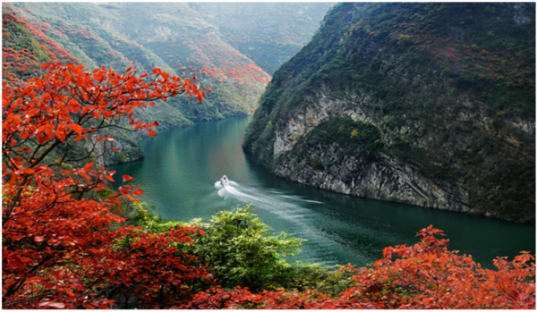 图片来源于网络,如有侵权,请联系告删游客可以从巫山县城出发,经巫大高速到达鱼头湾,在观景平台上俯瞰雄奇的鱼头湾、红遍两岸的红叶,矗立于一江碧水间,滴翠峡风景尽在眼中;接着来到石上生花,听“石头”和“花”的美妙结合,周围漫山鲜花开放,蓝天白云下,桃红柳绿,草长莺飞;然后来到大昌古镇,映入眼帘的是南大门、温家大院、明代书院等千年古镇画面,映衬着身后湖边两岸红叶,风景美不胜收;最后来到大昌湖国家湿地公园,这里展现出红叶与碧水交相辉映、人与自然和谐相处的美好场景,是三峡库区一处独特的河湖美景。