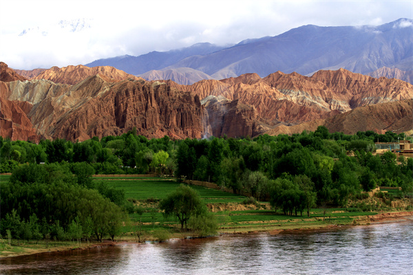 贵德阿什贡村:多种多样的地质遗迹反映了地质历史时期青藏高原的演化过程,也记录了黄河的发育史和贵德自然环境的变迁。其境内阿什贡景区尤为特殊,山体色彩呈七种颜色,山峰突兀林立,秀丽壮美,气势磅礴,地质造型古怪神奇,故称七彩峰。远远望去,丹山碧水,色彩斑斓的丹霞地貌和清澈的黄河水在蓝天白云的映衬下显得格外磅礴与震撼。