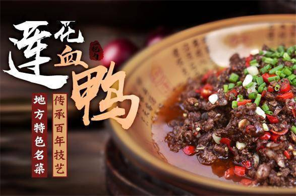 莲花血鸭:江西十大经典名菜之一,它的特点是色泽紫红油亮,鸭肉脆嫩,味鲜辣可口,备受食客的青睐,已成为江西省级非物质文化遗产代表性项目。