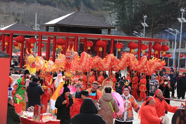 红螺寺祈福游园会:游园会以吉祥福文化为主线,推出系列丰富多彩的游园活动。既有五福贺岁、新年祈福、新春接福、赏员工自制宫灯猜趣味灯谜等群众喜闻乐见的传统活动,又有非遗展示、巡游、舞龙舞狮小杂技、蛇年趣味互动小游戏、特色小吃等。